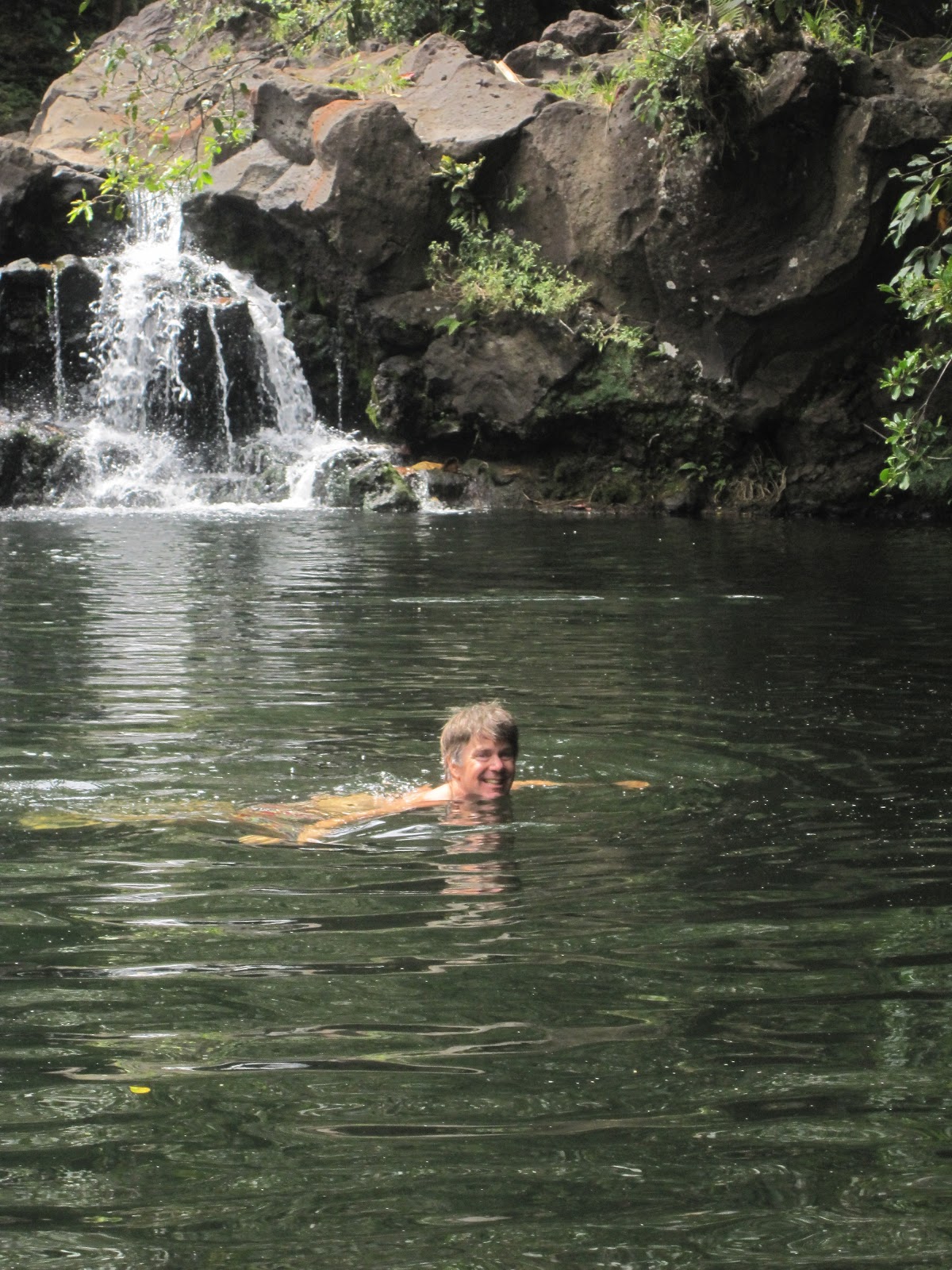At the halfway point the water was very shallow and most people stood for the turn-around. I was no different. After finding the rocks a potential for getting cuts, I dove headfirst into the water to continue my swim.