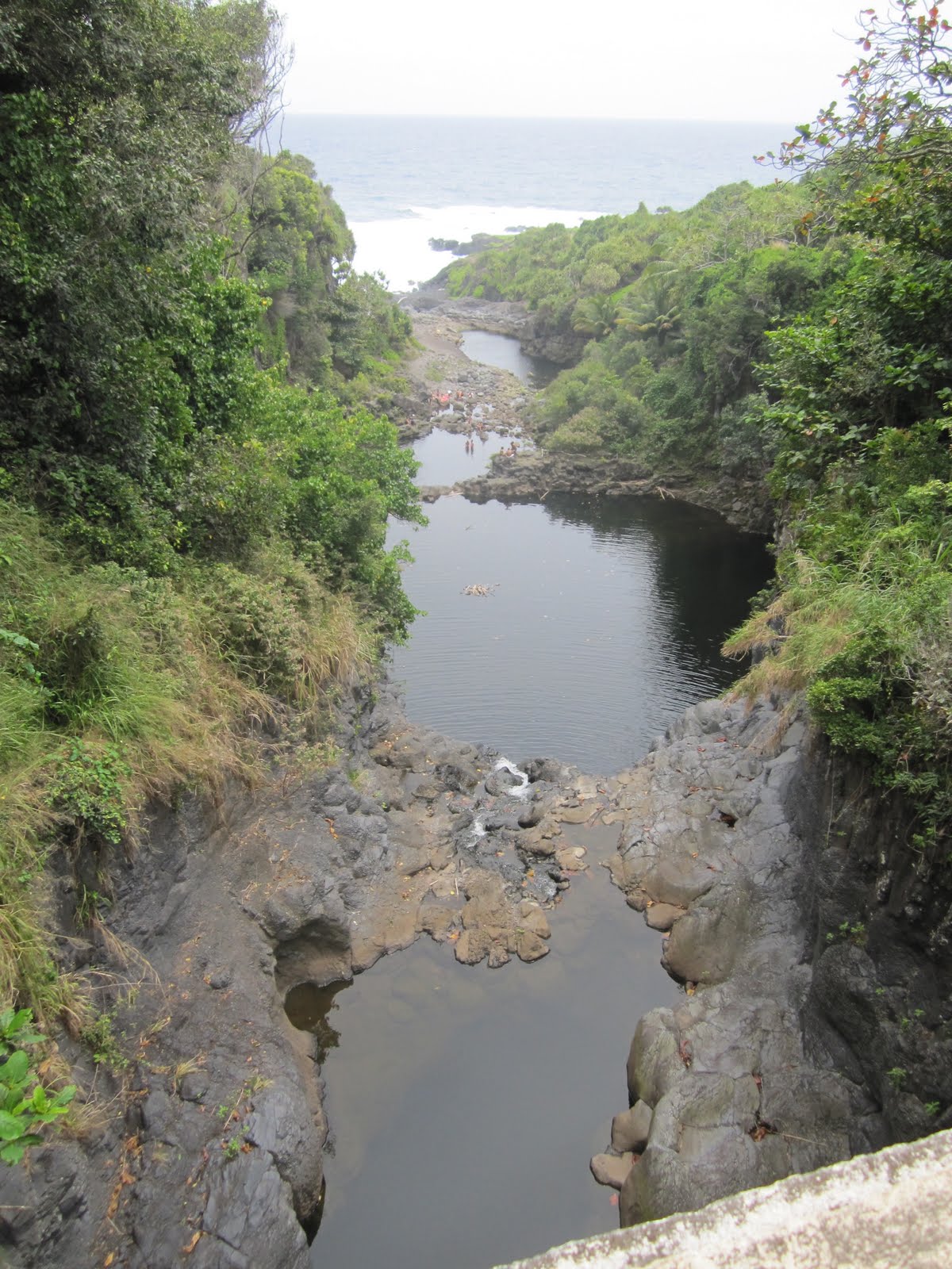 The hike was both a bit more taxing than I had imagined because I was wearing my Keen bicycle sandals. They were the perfect shoe for biking on the island of Maui. My tan lines, months later are still visible. However, they were not meant for hiking and exploring. They have a very stiff bottom so that there is plenty of support while pedaling. The downside to that when hiking is that there is no flexibility and my knees took the brunt of every step up or down on the paths and stairway leading to the falls. I had just completed my first marathon and my knees were still smarting with each step. I winced a little inside as we moved both toward and away from the falls. Even so, I am glad I went on the hike that day.