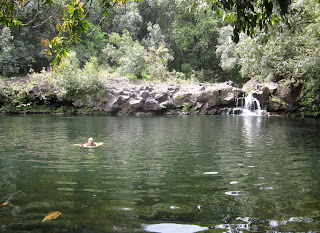 From there we pedaled our way to the Seven Sacred Pools. We hiked into a bit more remote spot in time to cook our lunches and swim, climb and explore a few ot the tiny falls. That particular pool was my favorite of the trip. I was able to float on my back, swim underwater and even performed an impromptu solo complete with a ballet leg or two in a nod toward my childhood's synchronized swimming performances.