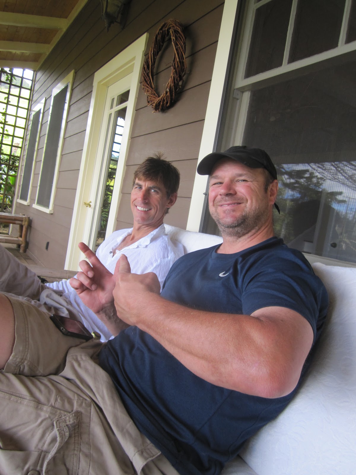 We were given clean towels, hot showers and a spot to relax and enjoy a new and altogether different scenery...that of a working Maui Ranch. Their restored home was beautiful, the food plentiful and the party was like something out of magazine. We tasted wine, we heard stories about the ranch turned winery and met their youngest son and sweet-natured dog. I actually cried when I stood in the hot shower, washing away the dirt. I appreciated the near-ending of the momentous journey. I was touched by the generous way the Hegele's cared for us, doing our laundry, and providing a spot to rest our weary heads. In point of fact, I slept on their porch on an outdoor sofa with cool breezes allowing me to bury beneath a thick sleeping bag.