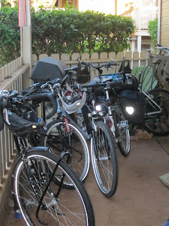 As soon as "camp" was set up for the men (I confess I was given a bed inside the first night) we rode our bikes to a nearby beach to swim. From there we headed back to Vanessa's in search of food.