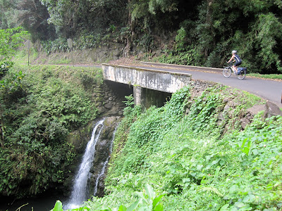 A bit further down the road my bike was not happy. I had traveled for nearly a week with a heavy laden bike and my chain was in need of lubricant. The others were ahead and my Ziplock baggie with the aforementioned article was not with me. I did, conveniently, have a bottle with olive oil and balsamic vinegar in it. Olive oil is a wonder for our health and it is an acceptable means to lubricate a bicycle while on a tour of Maui. Or so I now know thanks to the quick thinking of "MacGyver."