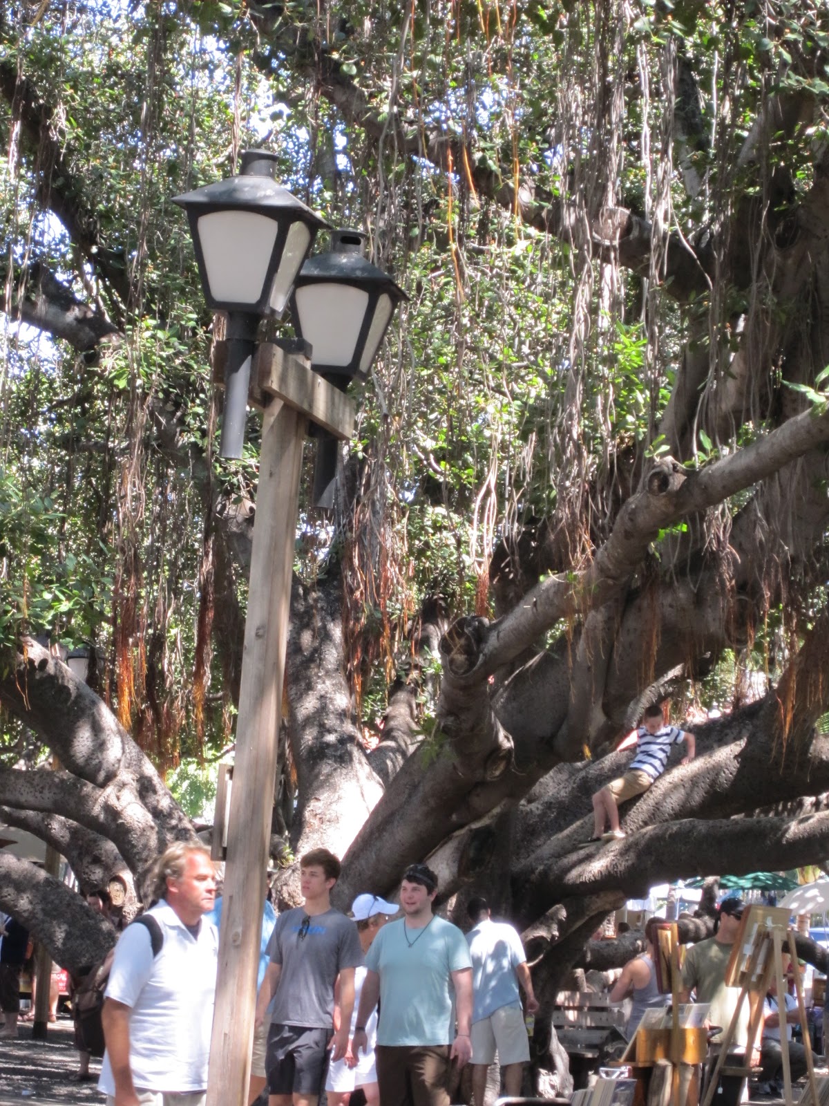 We somberly pedaled a few more miles to Lahaina and the Banyan Tree Park where art and food were being sold.