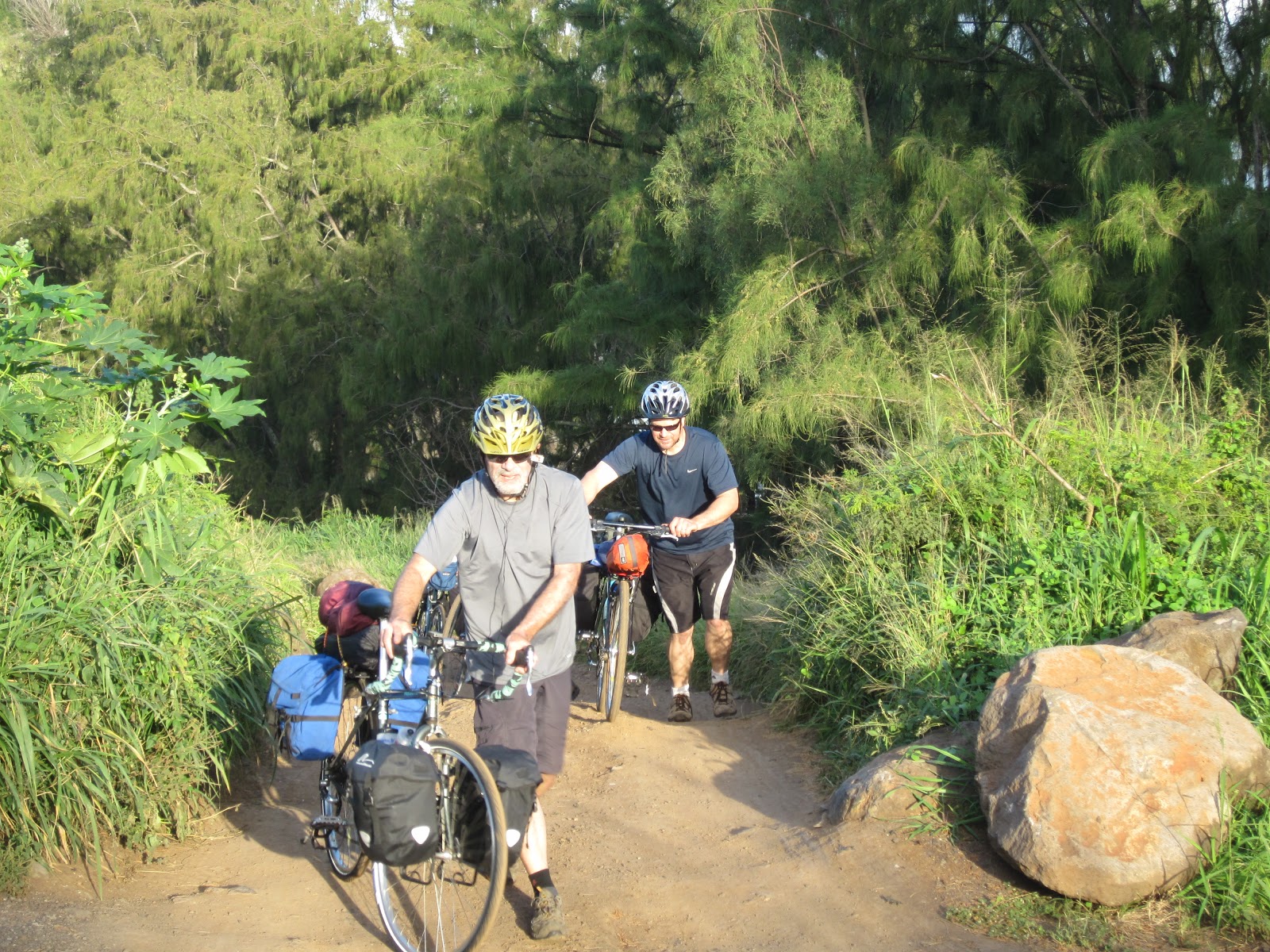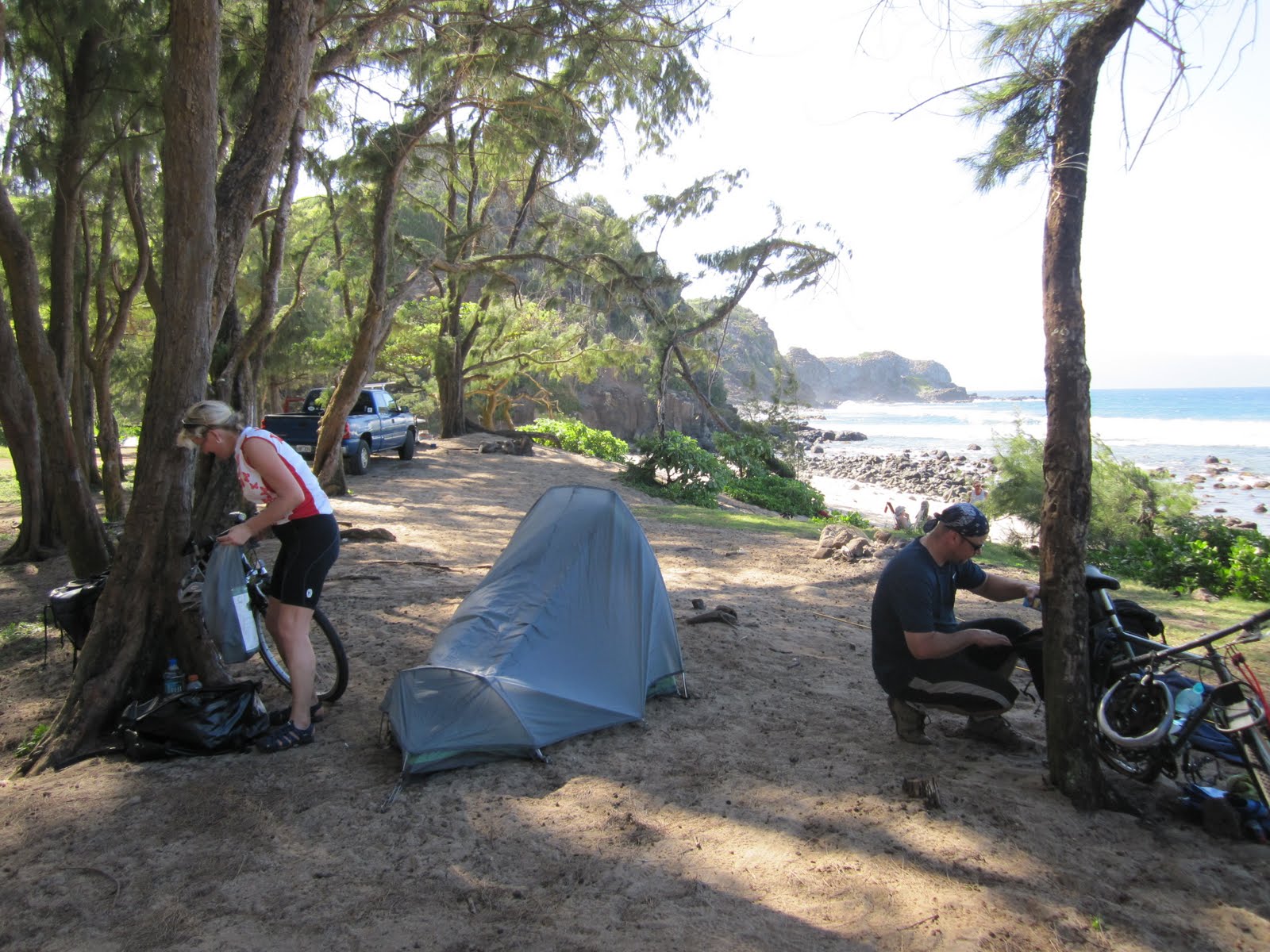From there we road to Kahului/Wailuku area. It was one of our warmest days. We seemed to do a bit of waiting to purchase the permits but since we were all in no rush it never amounted to much stress. We set up camp in a gracious local couple's yard. After setting up our tents we rode in search of a local swimming pool. Some of our group stayed at the Banana Bungalow Hostel and enjoyed their time there immensely.